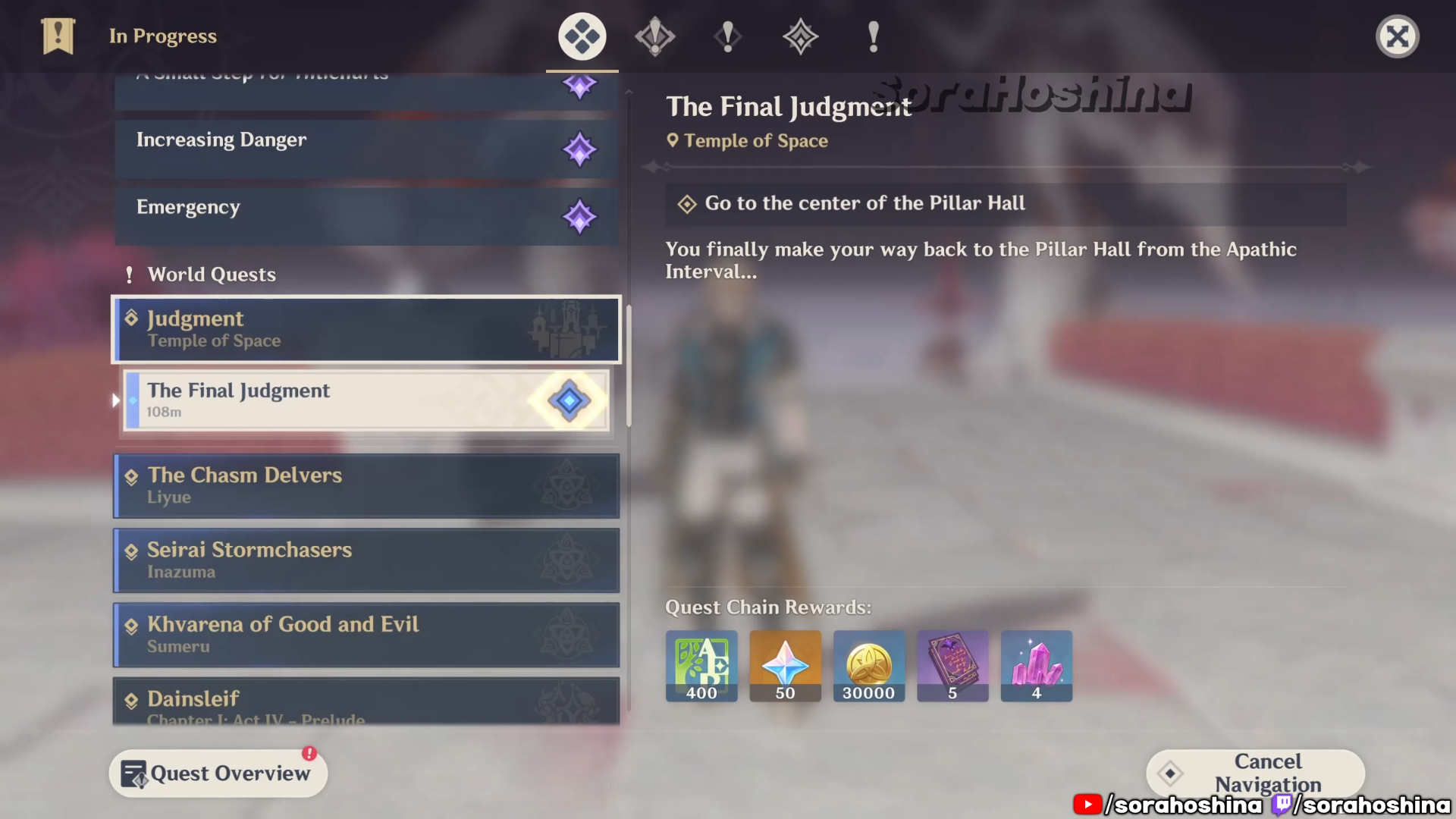 You will obtain ‘The Final Judgement’ quest automatically after completing ‘Lion’s Celerity’ quest in Genshin Impact. Once you get the quest, the first task is to go to the center of the Pillar Hall, so you can teleport to Temple of of Space: Memory Core. Afterwards, continue with the navigation until you reach the Corridor of Nothingness. This place is not marked on map.