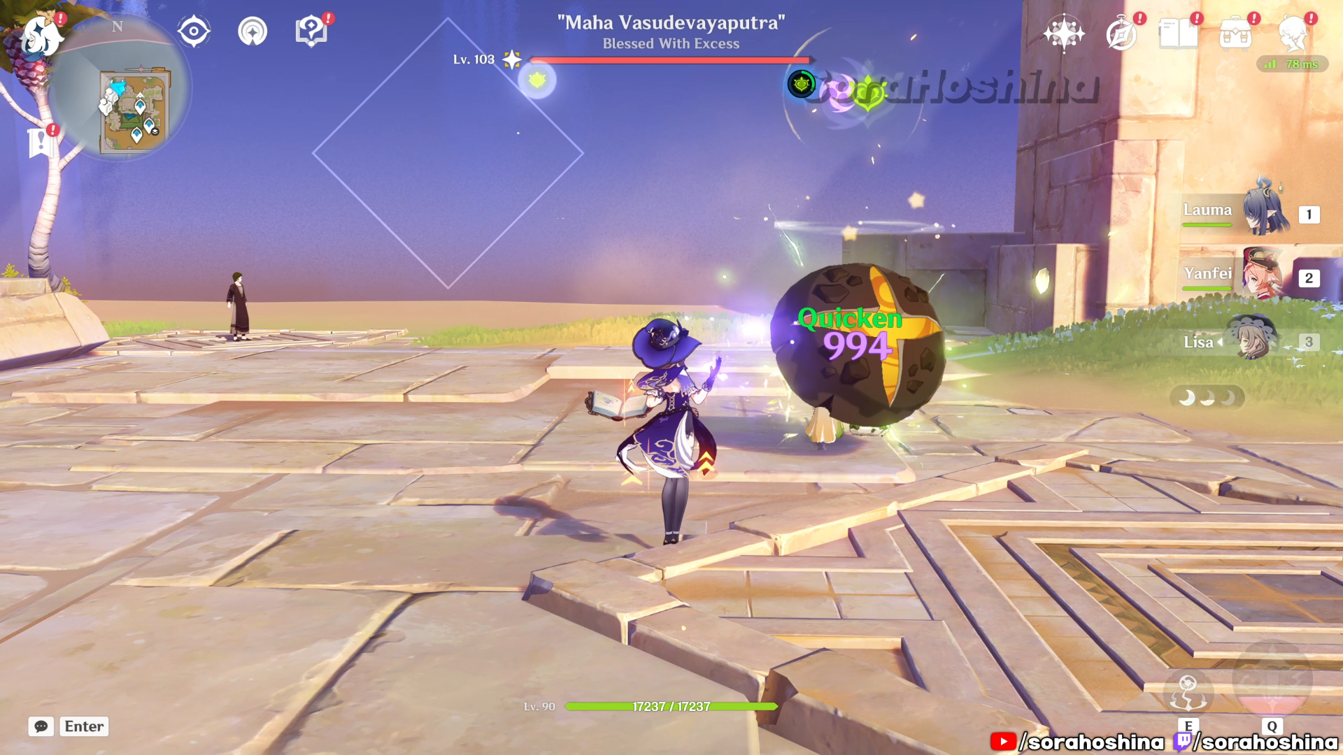 This is more of a team check because “Maha Vasudevayavaputra” will enter Scorched state if the Dendro gauge bar is not filled. As mentioned before, “Maha Vasudevayavaputra” will immediately enter Scorched state for the first time once you enter the battle. And after you force it to revert to the Normal state by filling the Dendro bar, you need to defeat it immediately before it can enter the Scorched state for the second time.